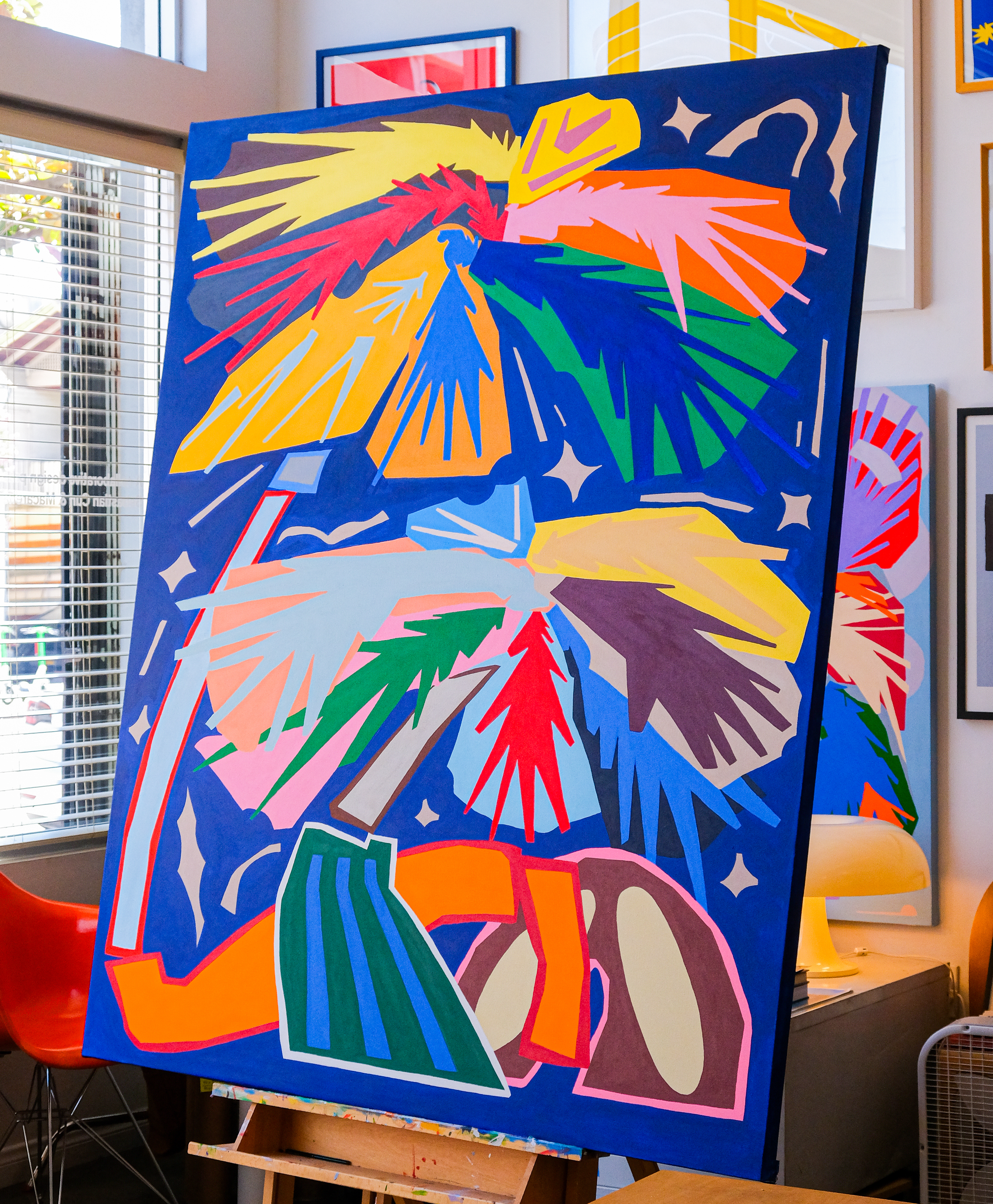 Paintings are carefully packed and shipped in mailing tubes or custom cardboard boxes.